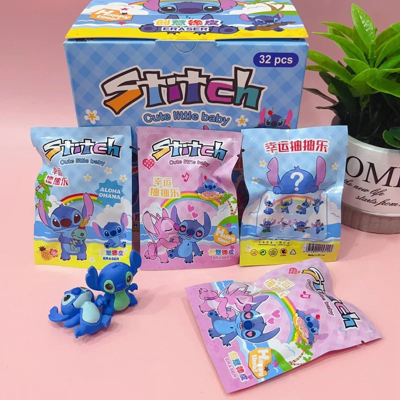 Stitch Eraser 32pcs Disney Kawaii Student Stationery Cartoon 3d Blind Bag Pencil Eraser Cleaning Tools Cute School Gifts Office