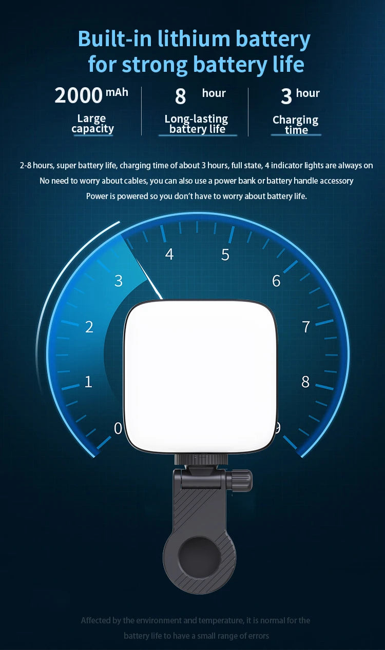 Luce portatile a LED per selfie, per videocamera per telefono o macchina fotografica da usare per videoregistrazioni su TikTok o altri canali, video per trucco e tanto altro.